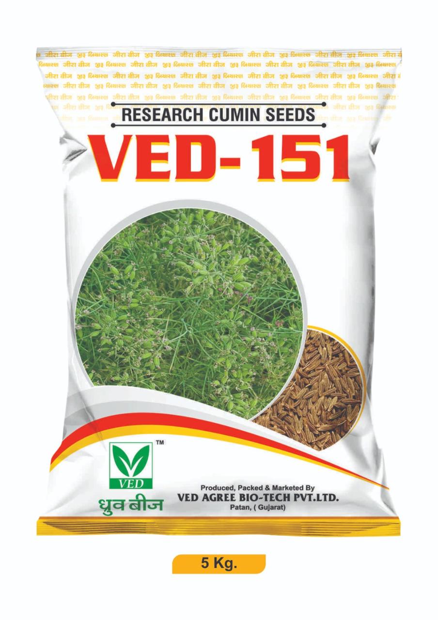 VED-151 Research Cumin Seeds ek advanced variety che je uniform crop growth ane high-quality dana mate khas banavel che. Aa variety thi paak ma ek saman growth male che, je harvesting ane selling banne ma easy bane che.