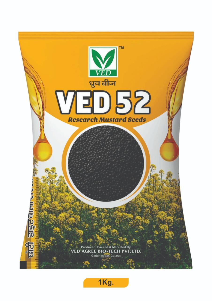 VED-52 Research Mustard Seeds ek improved variety che je khas kari ne controlled ane systematic crop growth mate design kari che. Aa beej thi plant ni height, growth ane development ek proper structure ma rahe che, je thi farming easy bane che.