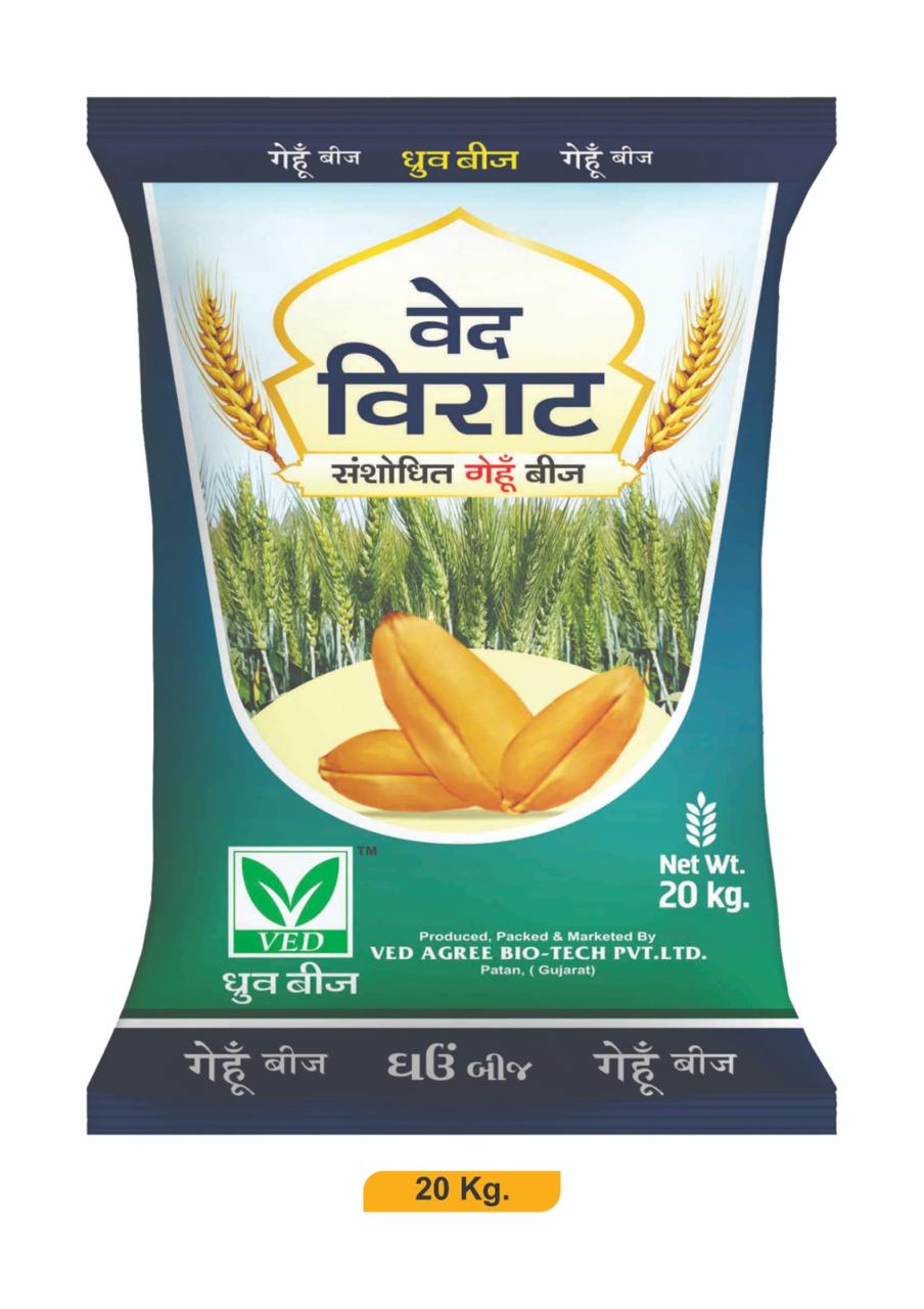 VED Virat ek improved wheat variety che je high yield, strong grain quality ane roti mate best output aape che.